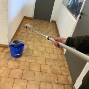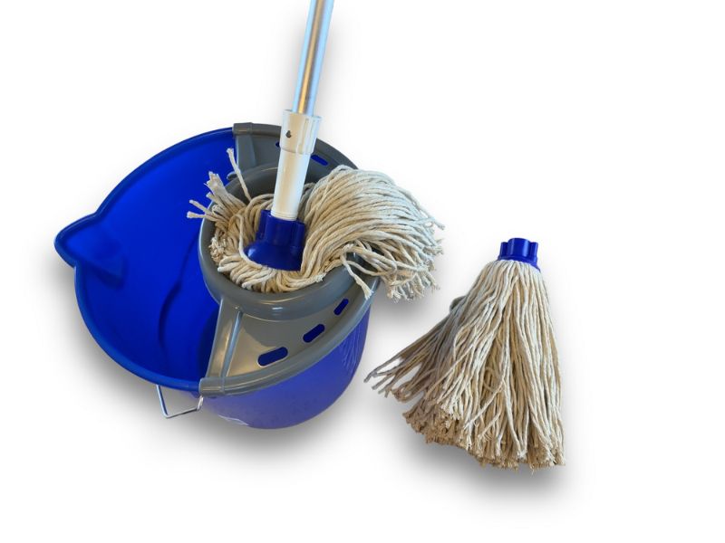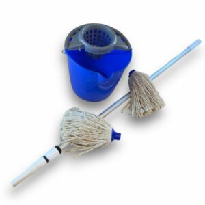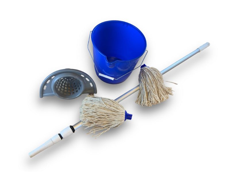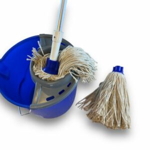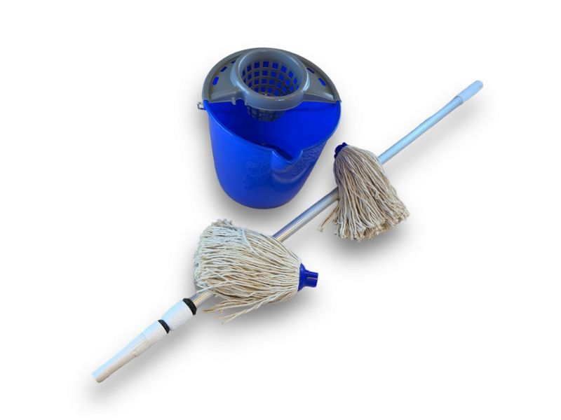 Cet ensemble comprend un manche en bois de 1,40 m, un seau en plastique de 10 litres avec bec verseur et poignée pour un transport facile, un panier essoreur en plastique et deux serpillières en coton à franges à visser. Tout ce dont vous avez besoin pour un nettoyage en profondeur de vos sols