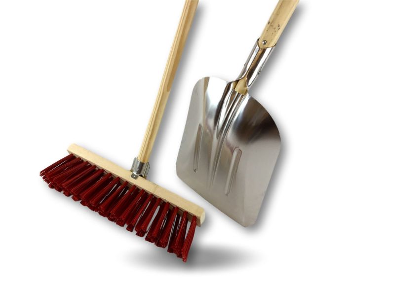 > Balai d’atelier type « cantonnier » + Pelle à neige, grains, sciure, charbon, céréales et autres matériaux légers