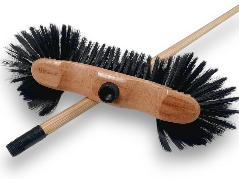 > Conception Haut de Gamme : Balai demi-tête traditionnel de la gamme luxe KAROP’S, conçu en bois vernis et équipé de poils en PET synthétique noirs pour un nettoyage délicat et efficace. Ne perds pas ses poils.