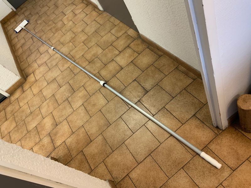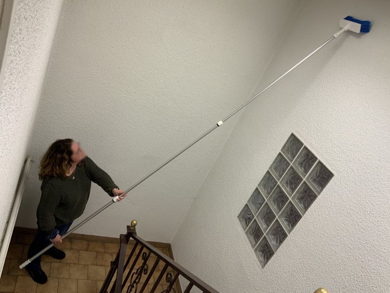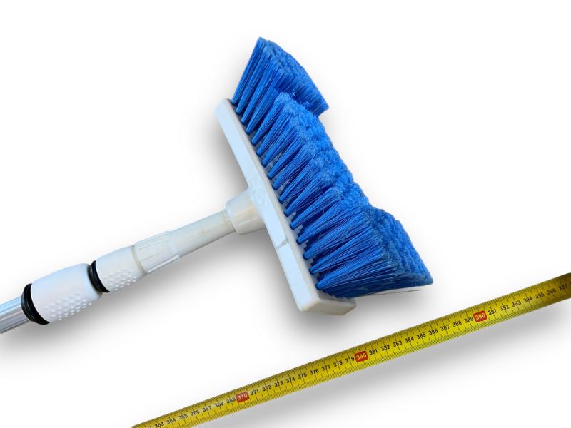 > Ce balai est équipé d’un manche téléscopique de 3,80 m pour vous permettre d’atteindre les zones difficiles d’accès. Un outil pratique pour un nettoyage efficace et sans effort en hauteur