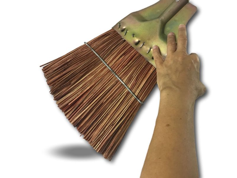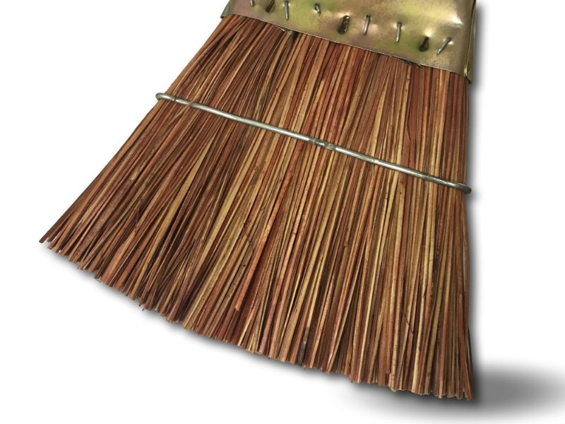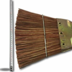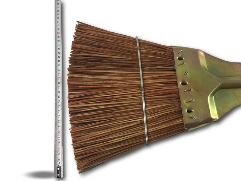 > Cet outil est fabriqué en fibres en piassava (rigides). Il est muni d’un support triangulaire en tole bichromé avec une douille en métal vissante pour le manche en bois de diamètre 27 mm