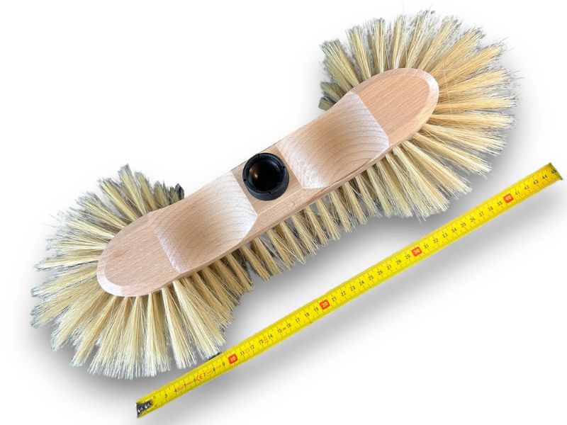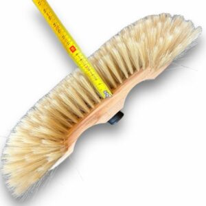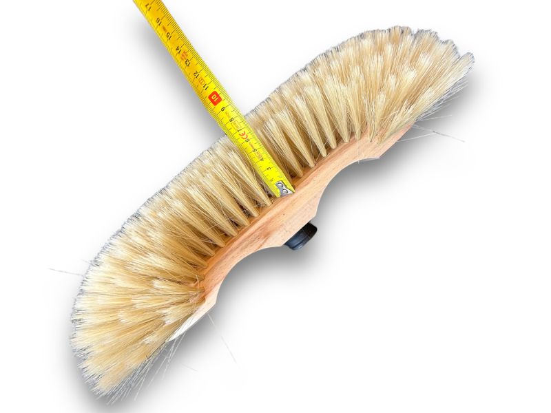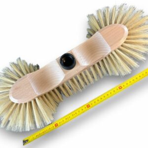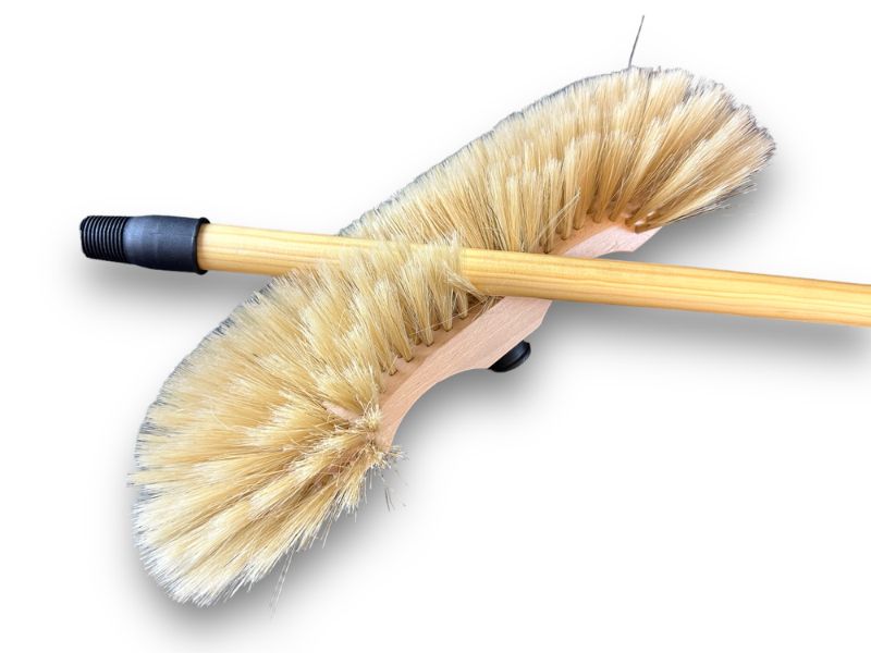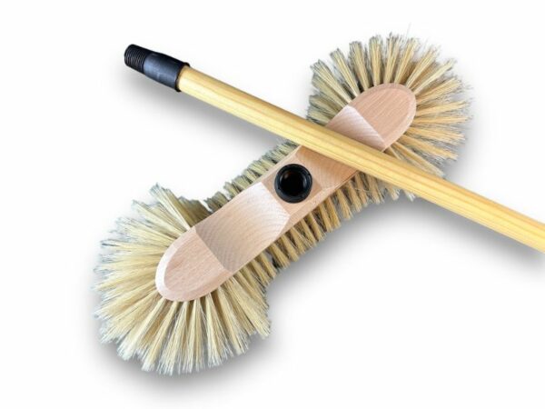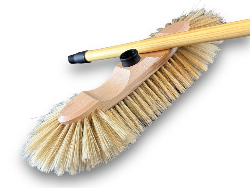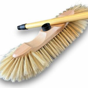 La monture en bois vernis et l’empilage incliné rendent le balai élégant et pratique.