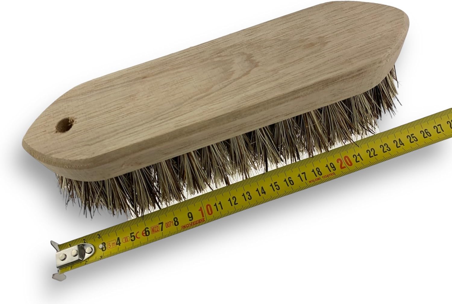 Cette brosse est équipée d’une monture en bois de hêtre non vernis de dimensions 25 × 8 × 7 cm, offrant une prise en main confortable et stable. Son garnissage en chiendent naturel garantit une action douce mais efficace sur les crins, en éliminant poussières, nœuds et saletés sans les abîmer. Les matériaux naturels assurent également une longue durée de vie, même en usage régulier.