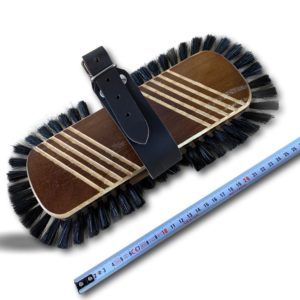 Une monture en bois et une sangle de maintien réglable agrémente cette brosse et lui confère une grande élégance