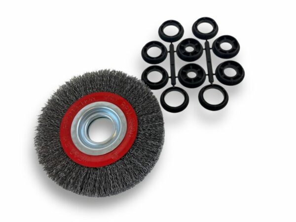 > Cette brosse circulaire est constituée de 2 éléments (2 rangs) en fil dur ondulé (0,30 mm) ou souple (0,20 mm). Ce type de brosse métallique, vous permettra de décaper, décalaminer ou de faire tout autre gros nettoyage sur tous les métaux et tous matériaux avec votre touret