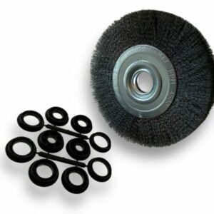 > Cet accessoire existe en différents diamètres extérieurs de 150, 200, et 250 mm. Sa largeur brossante est d’environ 25 mm . Son alésage est de 32 mm + bagues de réduction de 32/25 32/22 32/20 32/16 et 32/12 mm