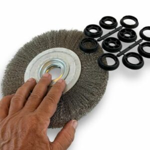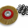 brosse circulaire métallique diamètre touret banc établi machine alésage acier inox laiton décapage ébavurage brossage meulage nettoyage dur agressive souple polissage réducteur adaptateur ébavure