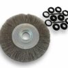 brosse circulaire métallique diamètre touret banc établi machine alésage acier inox laiton décapage ébavurage brossage meulage nettoyage dur agressive souple polissage réducteur adaptateur ébavure