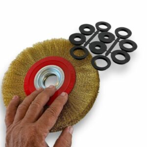 Cette brosse circulaire avec alésage est adaptable sur différentes machines comme les tourets, les meuleuses d’établis ou les bancs de polissage brossages et autres. Ces brosses existent en différentes matériaux : acier, inox, laiton