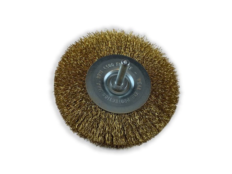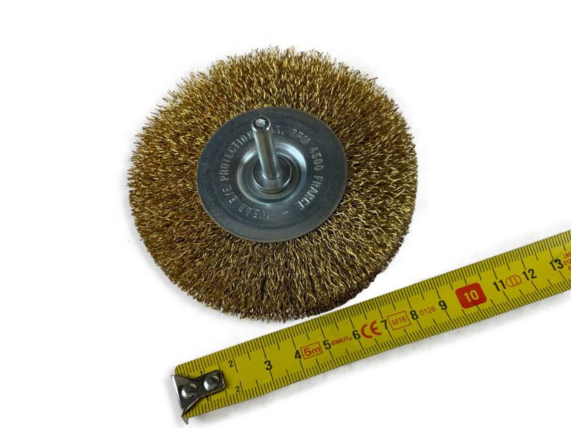> Diamètre brosse : 100 mm | Diamètre tige : 6 mm | Garnissage : Fil laiton dur Ø 0,30 mm