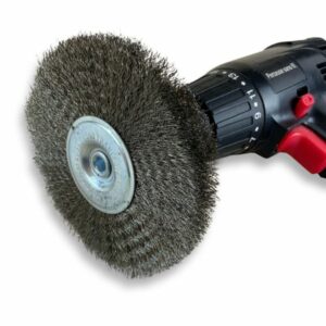 > Brosse rotative circulaire métallique sur tige pour perceuse ou visseuse | Utilisation pour le décapage, ébavurage, brossage, polissage, nettoyage, ponçage de peinture, rouille, soudure