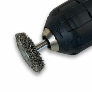 > Brosse rotative circulaire métallique sur tige pour perceuse ou visseuse | Utilisation pour le décapage, ébavurage, brossage, polissage, nettoyage, ponçage de peinture, rouille, soudure
