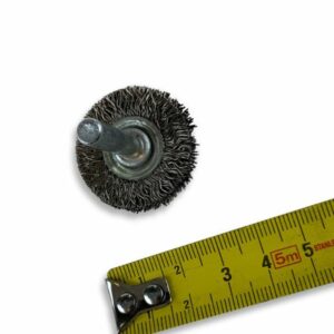 > Diamètre brosse : 30 mm | Diamètre tige : 6 mm | Garnissage : Fil inox dur Ø 0,30 mm