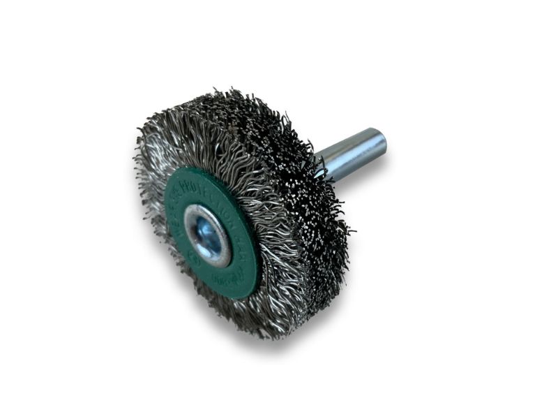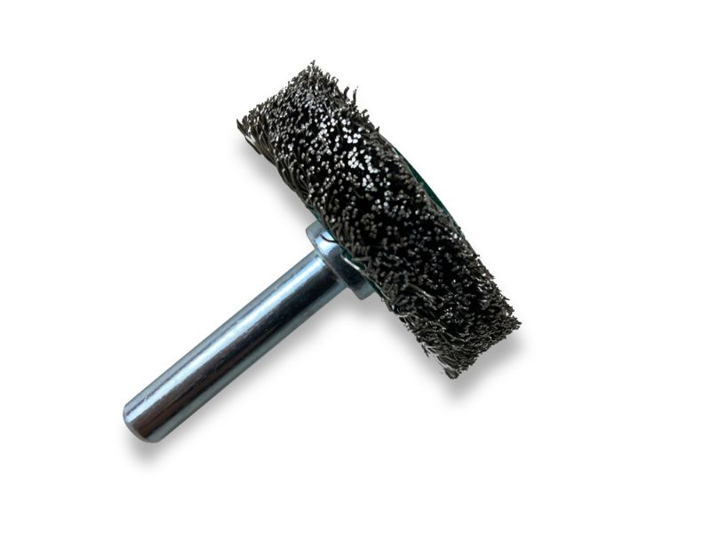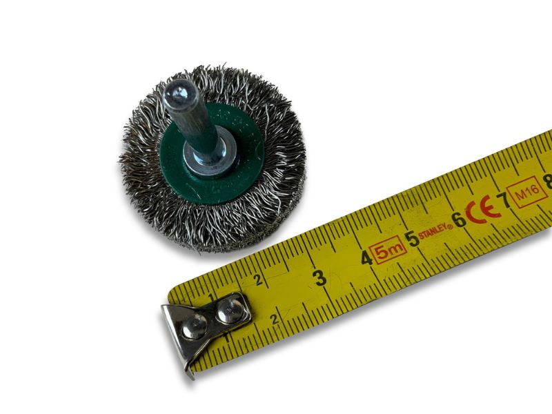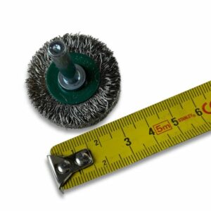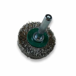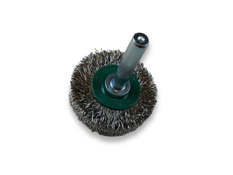 > Diamètre brosse : 38 mm | Diamètre tige : 6 mm | Garnissage : Fil inox dur Ø 0,30 mm