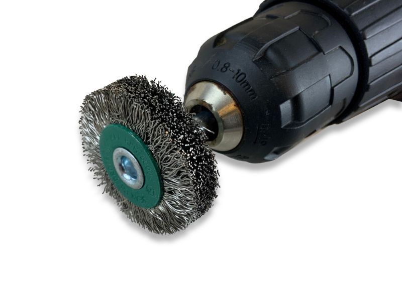 > Brosse rotative circulaire métallique sur tige pour perceuse ou visseuse | Utilisation pour le décapage, ébavurage, brossage, polissage, nettoyage, ponçage de peinture, rouille, soudure