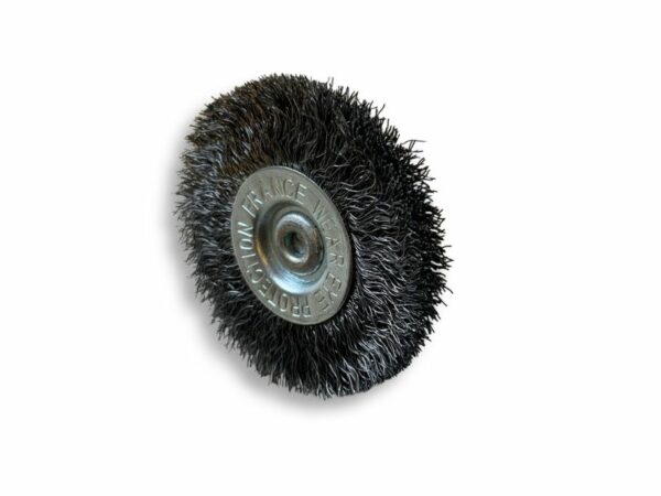 > Ces brosses circulaires existent dans différents diamètres : 30-38-50-60-75-100-125 mm | Différents fils : souple (0,20 mm) et dur (0,30 mm) | Différents matériaux : acier, inox, laiton, nylon