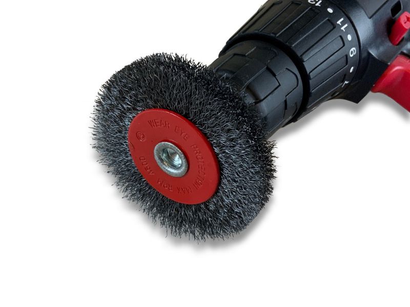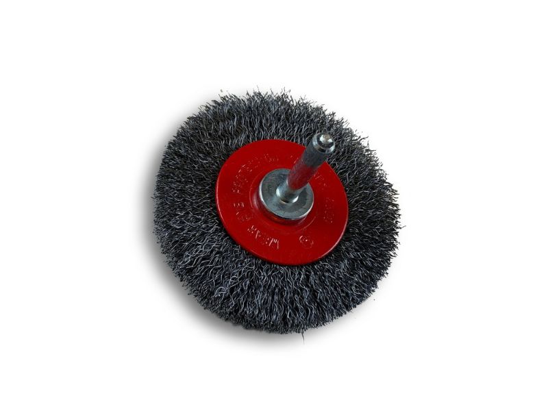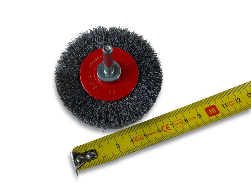 > Brosse rotative circulaire métallique sur tige pour perceuse ou visseuse | Utilisation pour le décapage, ébavurage, brossage, polissage, nettoyage, ponçage de peinture, rouille, soudure