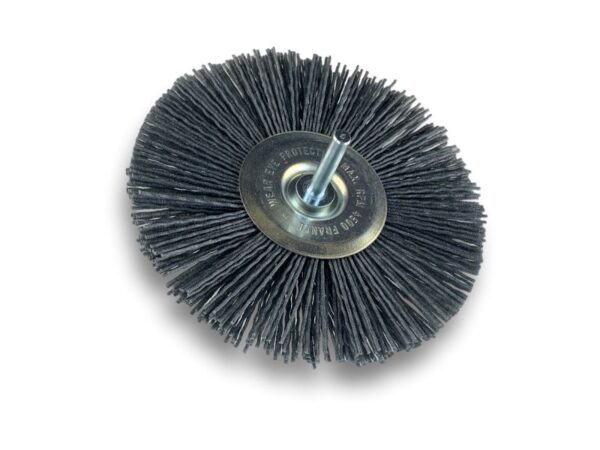 > Son garnissage est en nylon abrasif carbure de silicium en grain 80 ou 120, un matériau reconnu pour sa résistance et son efficacité. Cette brosse peut facilement manipuler des tâches telles que le décapage de peinture, l’élimination de la rouille et le ponçage de soudure
