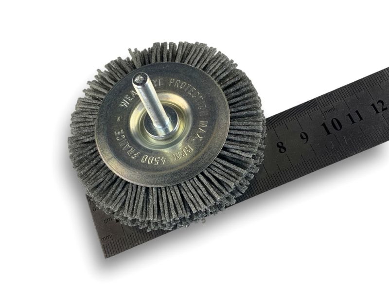 > Son garnissage est en nylon abrasif carbure de silicium en grain 80 ou 120, un matériau reconnu pour sa résistance et son efficacité. Cette brosse peut facilement manipuler des tâches telles que le décapage de peinture, l’élimination de la rouille et le ponçage de soudure