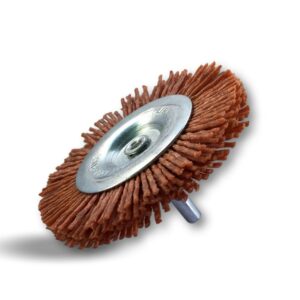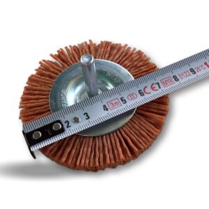 > Diamètre brosse : 75 mm | Diamètre tige : 6 mm | Garnissage : Brins nylon abrasif grain 80