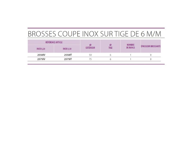 Brosses rotatives coupe sur tige | Inox dur