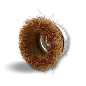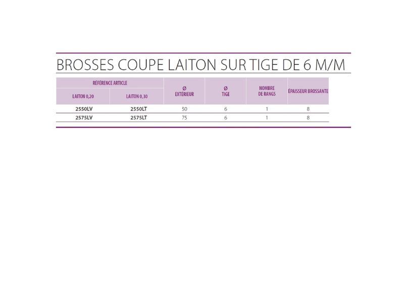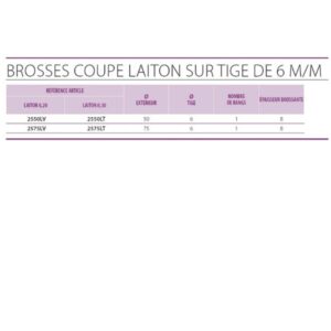 > Ces brosses circulaires existent en | Différentes diamètres : 50 – 75 mm | Différents fils : souple (0,20 mm) et dur (0,30 mm) | Différents matériaux : acier, inox, laiton, nylon abrasif (grain 80)