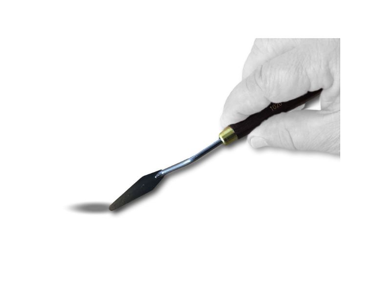 > Il résiste à l’usure et à la corrosion, quel que soit le support, y compris l’acrylique. Facile à nettoyer et à ranger, il suffit d’essuyer l’excès de peinture, nettoyer la lame avec du savon et de l’eau tiède, et sécher avant de ranger. Dans les applications à l’huile, utilisez du diluant ou de l’essence minérale