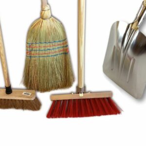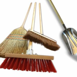 Ensemble de 3 balais de rue + pelle – Cantonnier PVC 32 cm – Coco naturel – Paille de riz – Pelle aluminium