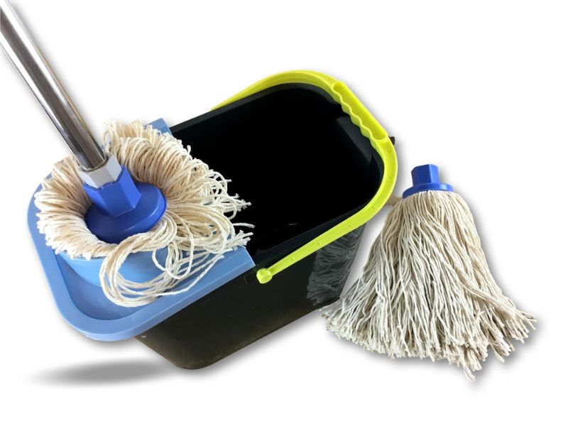 1 manche télescopique, 1 seau et 2 serpillières à franges