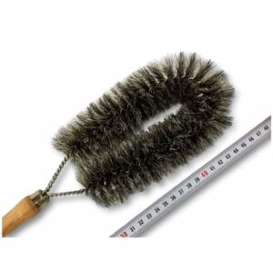 > Muni d ‘un crochet de suspension pour faciliter le rangement, la couleur de le brosse grise évite sa salissure, la soie permet des nettoyages délicats, le vernis du bois accroit la longévité, la virole et la tige torsadée inox augmentent sa solidité
