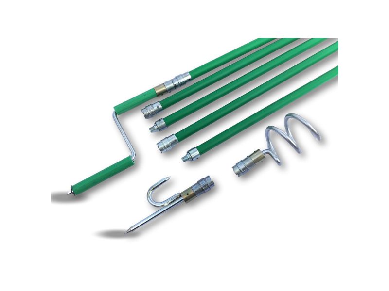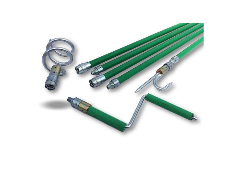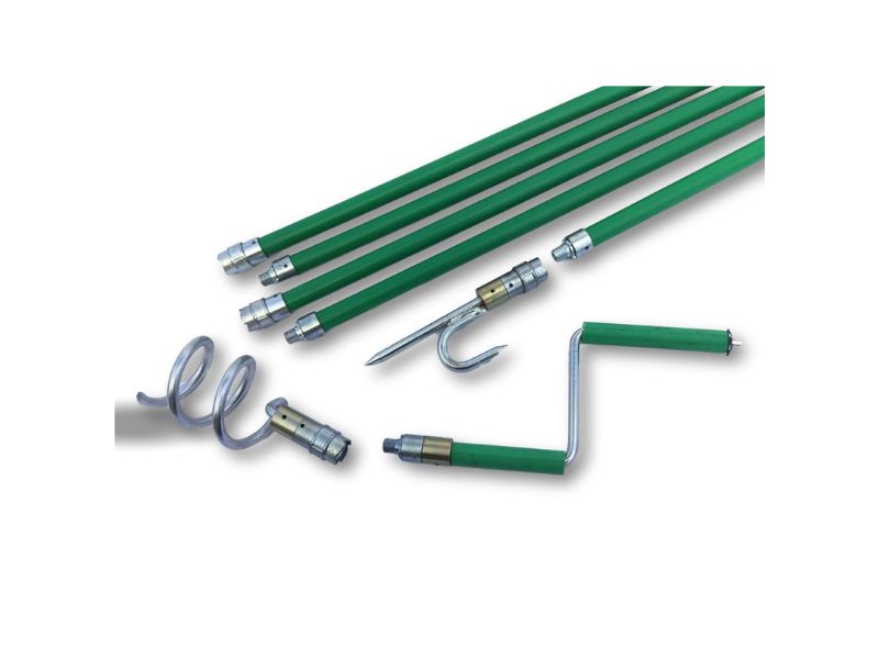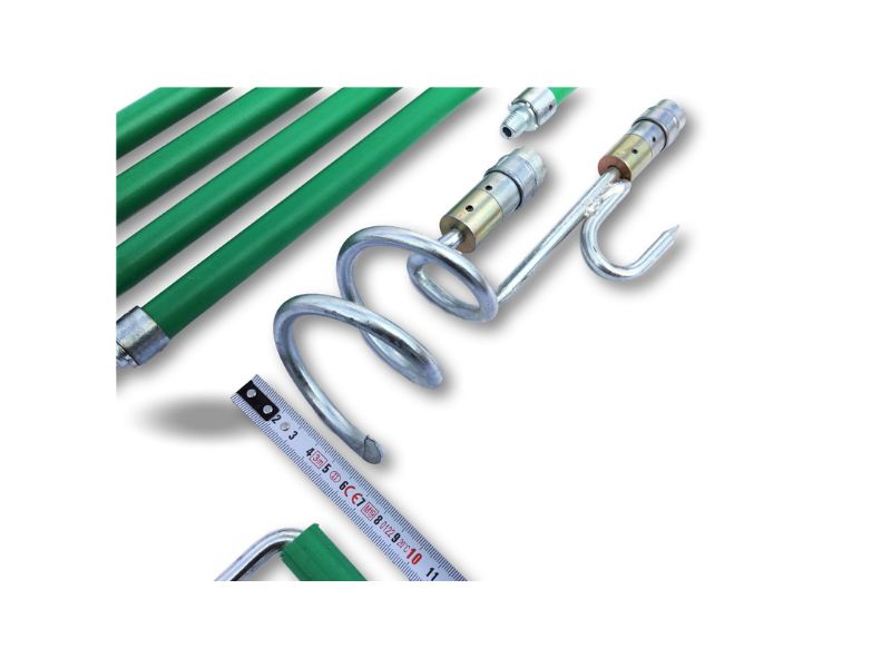 - >Ensemble de 5 Cannes : Comprend 4 cannes de 1,40 m et 1 canne de 1 m, totalisant une longueur de 6,60 mètres. Les cannes sont en polypropylène vert, d’un diamètre de 18 mm, offrant une haute flexibilité pour passer à travers des conduits même courbés.