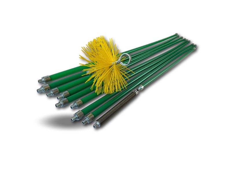 Grâce à sa brosse synthétique souple, ce kit assure un ramonage en profondeur sans risque d’endommager les conduits gainés.