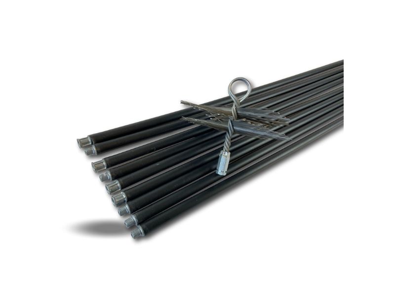 Il comprend un hérisson acier et 9 cannes de 1,40 mètre, offrant une longueur totale de 12,6 mètres, idéale pour atteindre les conduits profonds.
