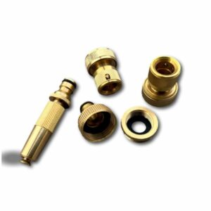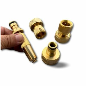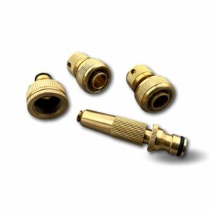 > Ce kit complet en laiton est composé d’un connecteur tétine libre et d’un autre waterstop qui servent de jonction entre un tuyau et une tétine, d’un adaptateur robinet 3/4′ et 1′ et d’une buse d’arrosage réglable