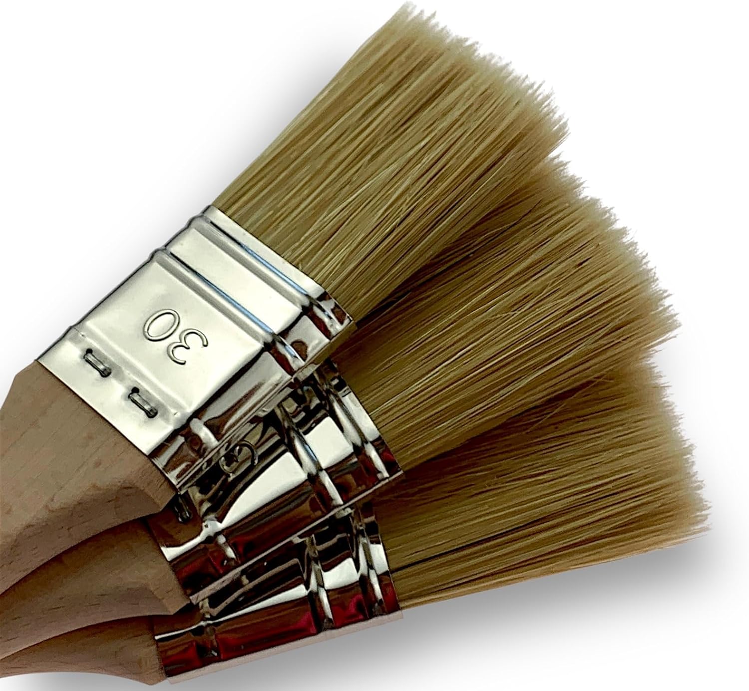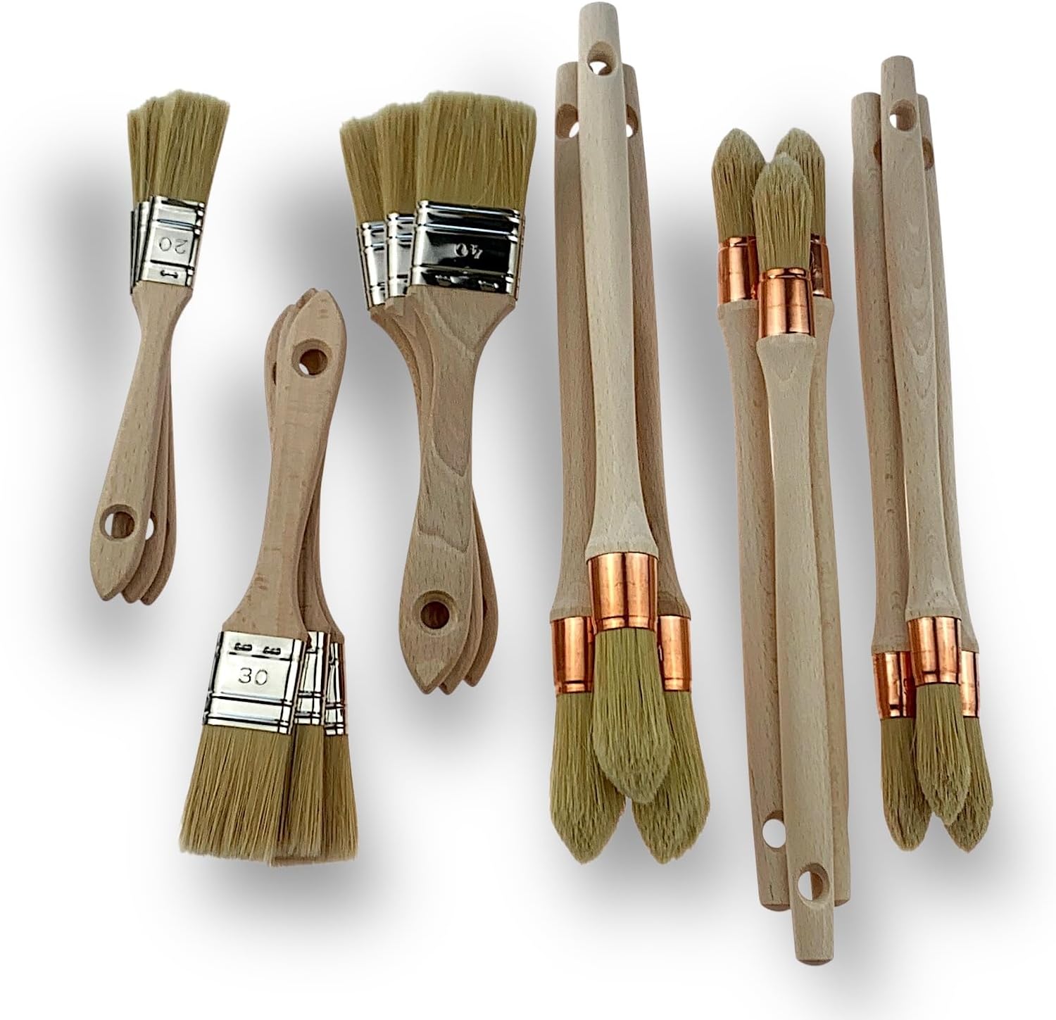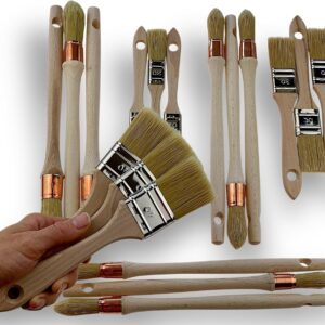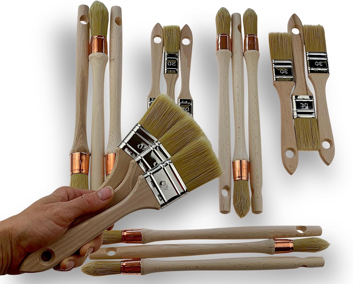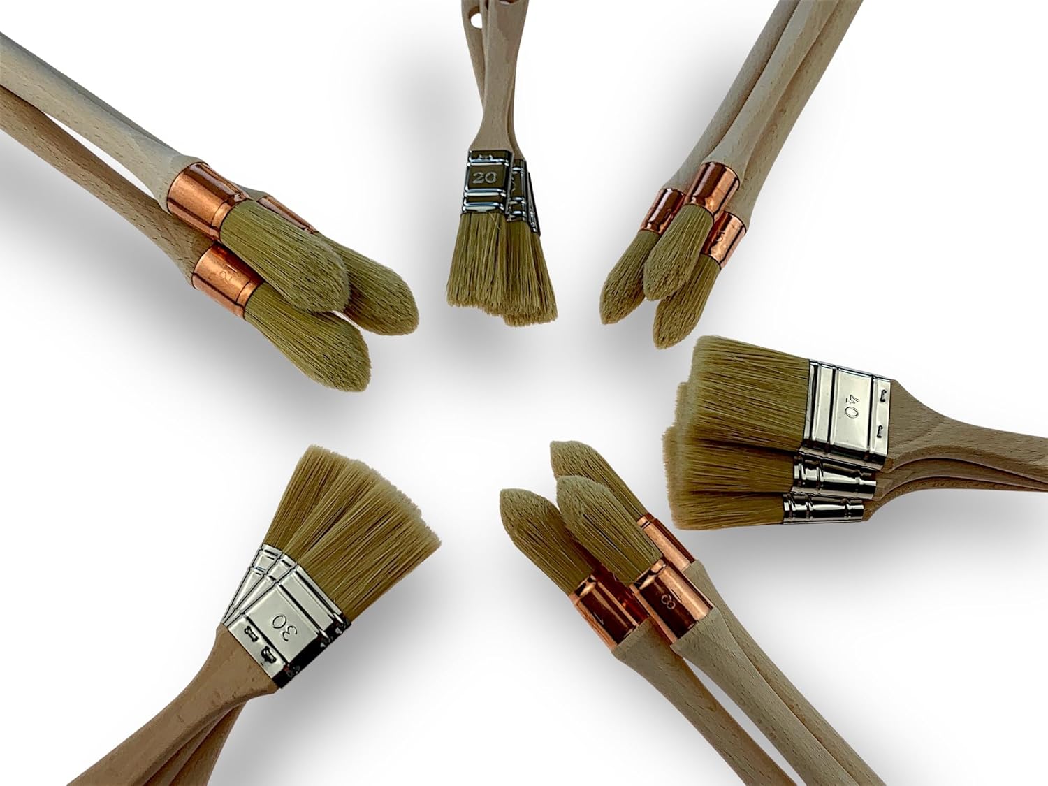 Lot de 18 pinceaux | 9 à rechampir Soie n°3/0 – n° 0 – n° 2 | 9 à vernir série épaisse Largeur 20-30-40 mm