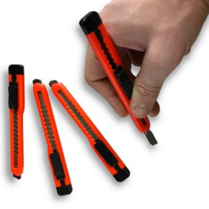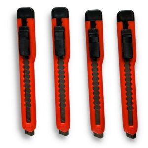 > Un lot de 4 cutters en plastique à disposer dans vos tiroirs au bureau