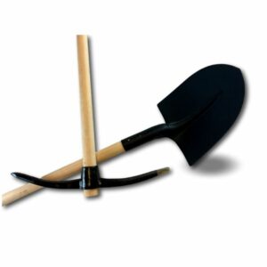 > Ce kit se compose d’une pioche de terrassier et d’une pelle de maçon à bout rond. La pioche est recommandée pour les gros travaux de terrassement et pour les travaux dans un sol empierré ou particulièrement dur et la pelle est utilisée aussi bien dans les travaux publics, principalement dans la maçonnerie pour la fabrication du béton, que pour le jardinage pour creuser des trous pour les plantations ou ramasser des feuilles mortes