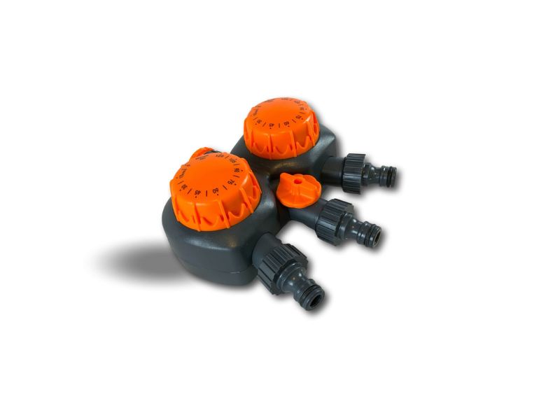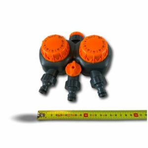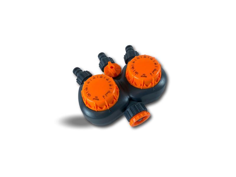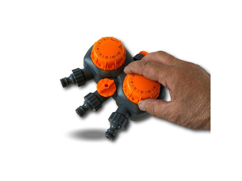 > Ce minuteur mécanique d’arrosage se fixe à votre robinet d’eau extérieur et vous permet d’avoir un système pratique et fiable pour l’arrosage de vos espaces verts. Il se connecte aux tétines et adaptateurs de 13 et 19 mm. Il a 3 sorties donc vous pouvez connecter 3 conduites d’eau à cette minuterie