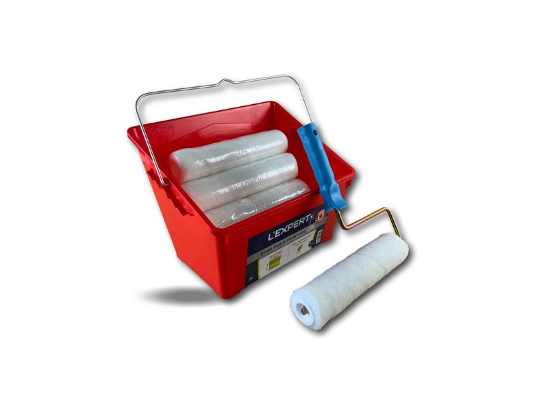 Pack peinture Velours | 10 manchons 250 mm à vis | 1 monture | Seau – Quantité x 1