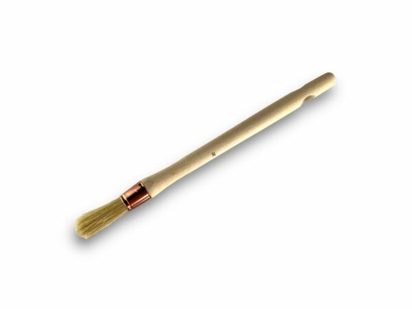 > Conçu pour durer, notre pinceau vous séduira par sa robustesse et sa durabilité. Son Manche en bois brut offre une excellente prise en main et sa virole cuivrée garantit un collage des soies de qualité