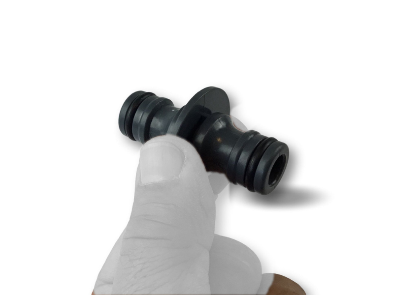 > Raccord parfaitement étanche, avec joints d’étanchéité, adaptable à l’emploi de deux tuyaux petits débit grâce à cette dérivation 3 voies