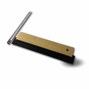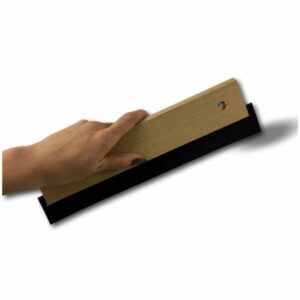 > Cette raclette se compose de deux parties : la partie supérieure est en bois et la partie inférieure est en caoutchouc noire. Elle sert à couler et nettoyer les joints de carrelage mural ou au sol