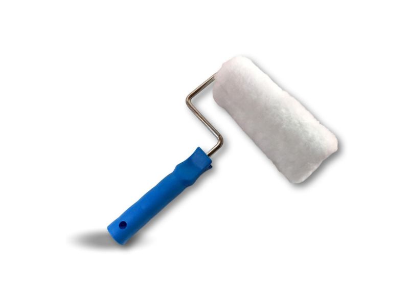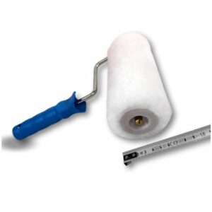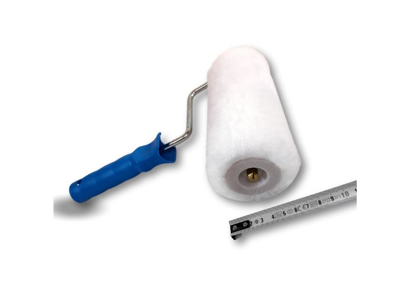 > Rouleau pour peindre, en polyester, à poils longs. Largeur du rouleau 180 mm alésage 8 mm avec une monture comprenant une poignée en plastique et une tige en acier.
