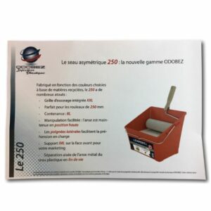 > Ce seau asymétrique de taille XXL fait partie de la nouvelle gamme ODOBEZ . L’un de ses côtés est en forme de plan légèrement incliné qui facilite grandement un essorage efficace, évitant ainsi les éclaboussures ou une trop grande surcharge du rouleau