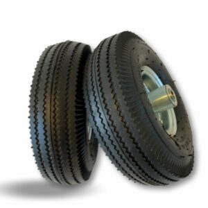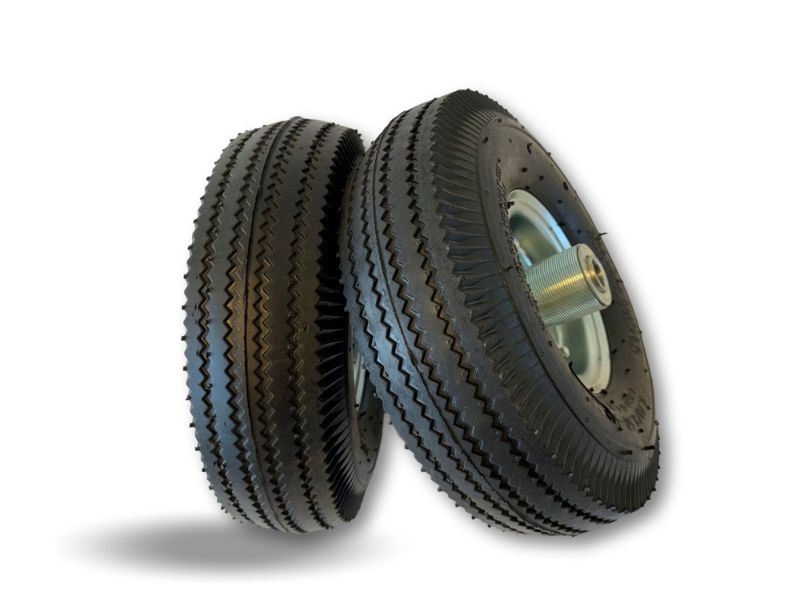 > Les roues pneumatiques sont particulièrement adaptées à l’absorption des chocs et fonctionnent correctement sur les surfaces difficiles telles que l’herbe ou le gravier, ainsi que sur les surfaces rugueuses et inégales