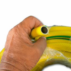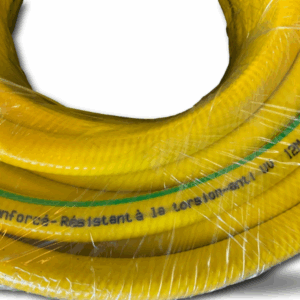 > Tuyau d’arrosage souple et résistant à la pression. Ce tuyau est composé de 4 couches, 3 couches en PVC + 1 couche armature en fibre textile, le tout avec un poids de 200g au mètre. Il s’adaptera sur tous les accessoires d’arrosage, raccords, robinets, douchettes, tourniquets….